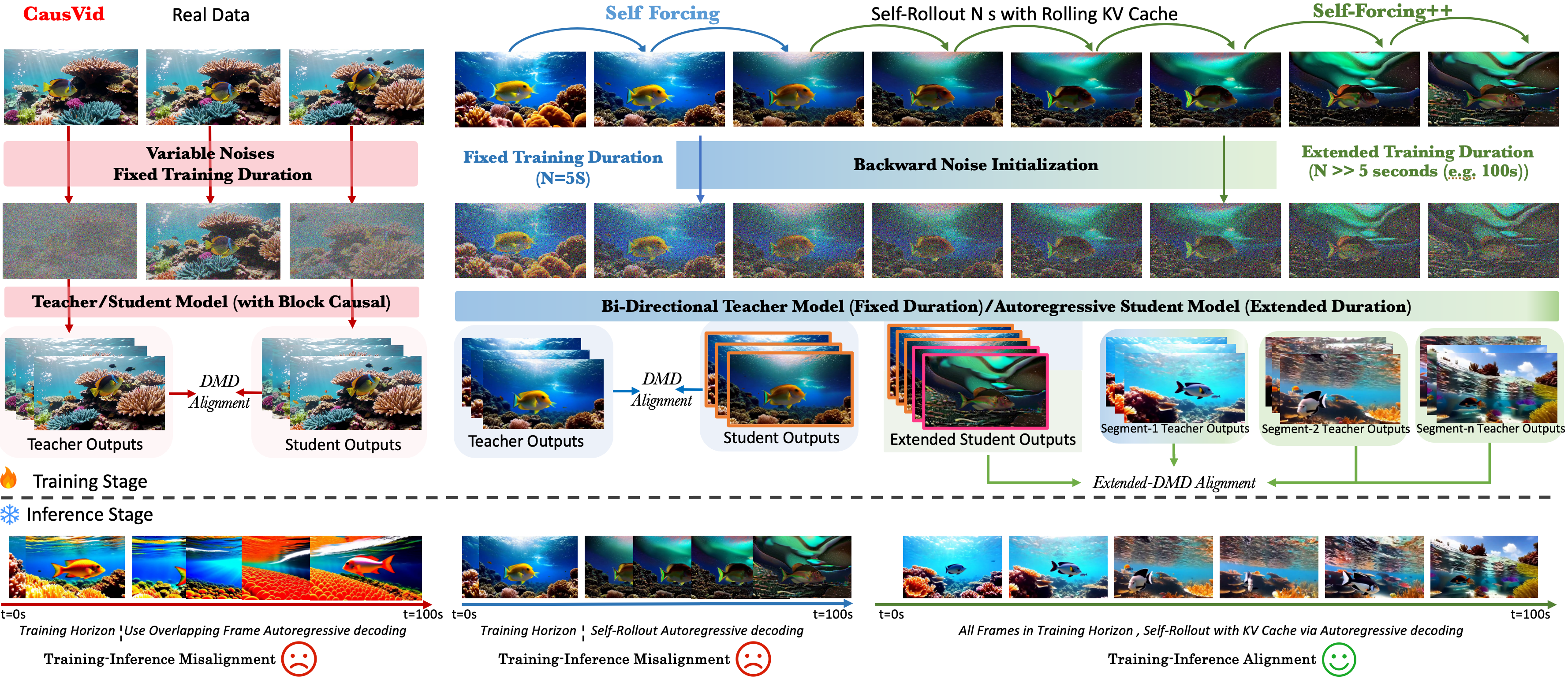 Bi-directional diffusion can be seen as a process of gradually restoring a degraded target. We adapt it to autoregressive generation by having a short-horizon teacher refine the student’s outputs and then distilling these correction knowledge back into the student model.